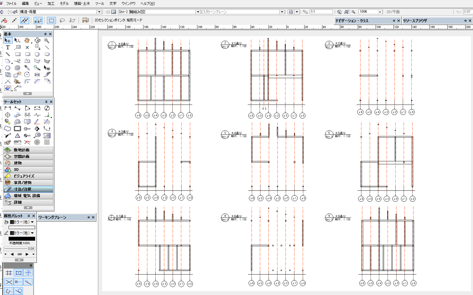 軸組み図を表示させるシートレイヤは予め用意しておいてもいいし、断面ライン入力後のどちらでもいいと思います。