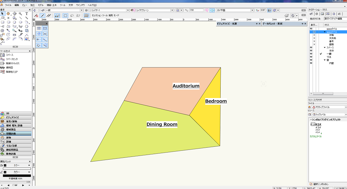 全てを非表示としてスペース本体(図形)だけを表示させることもできます。
