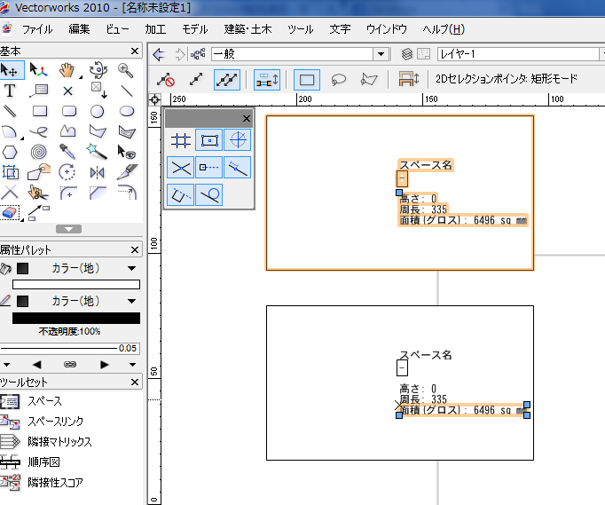スペース名だけ、番号とスペース名、または番号とスペース名と面積等・・・という風に、様々に表現できるようにしてみました。
