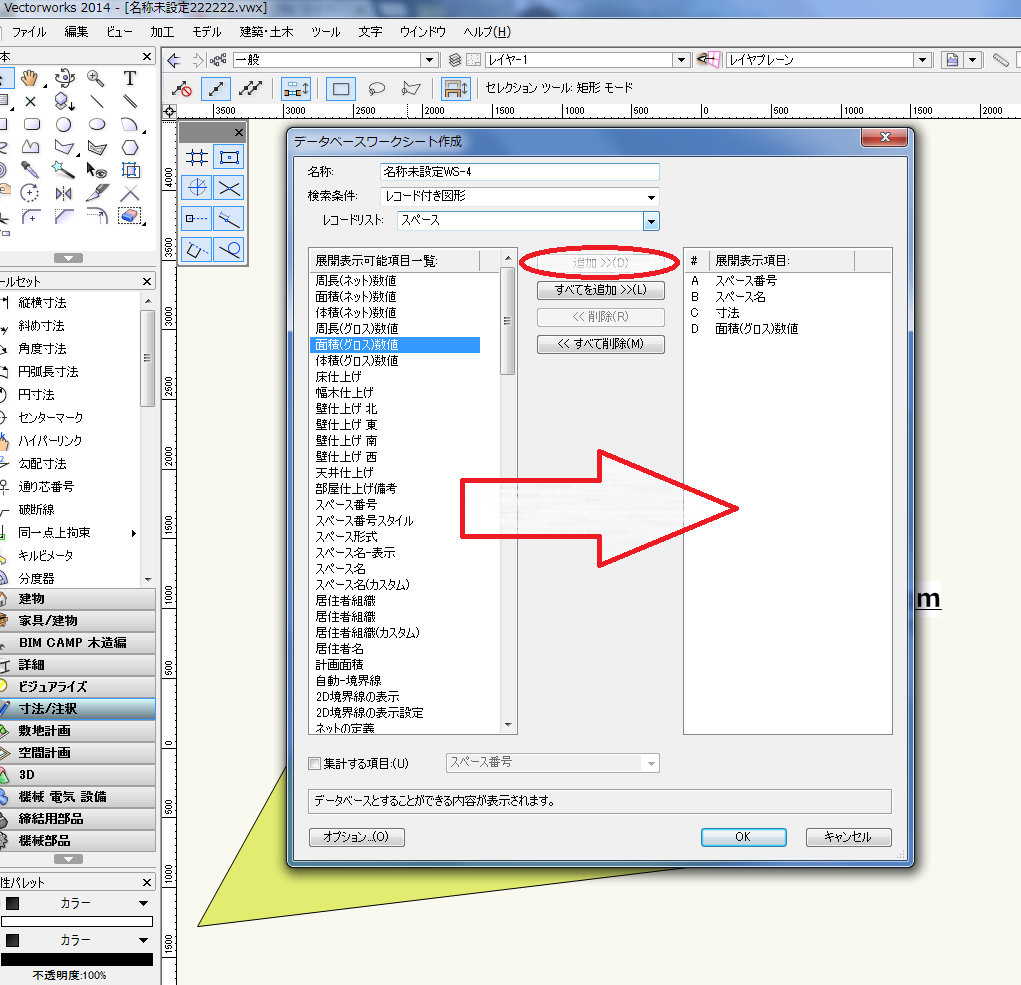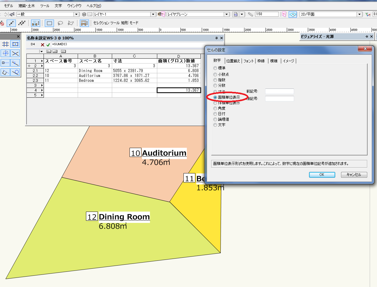 *ベクターワークス【面積表】【面積計算】【ワークシート面積】など、意外と面積に関するキーワードが多いので前回ネタのスペースを使って面積ワークシートを作ってみたいと思います。