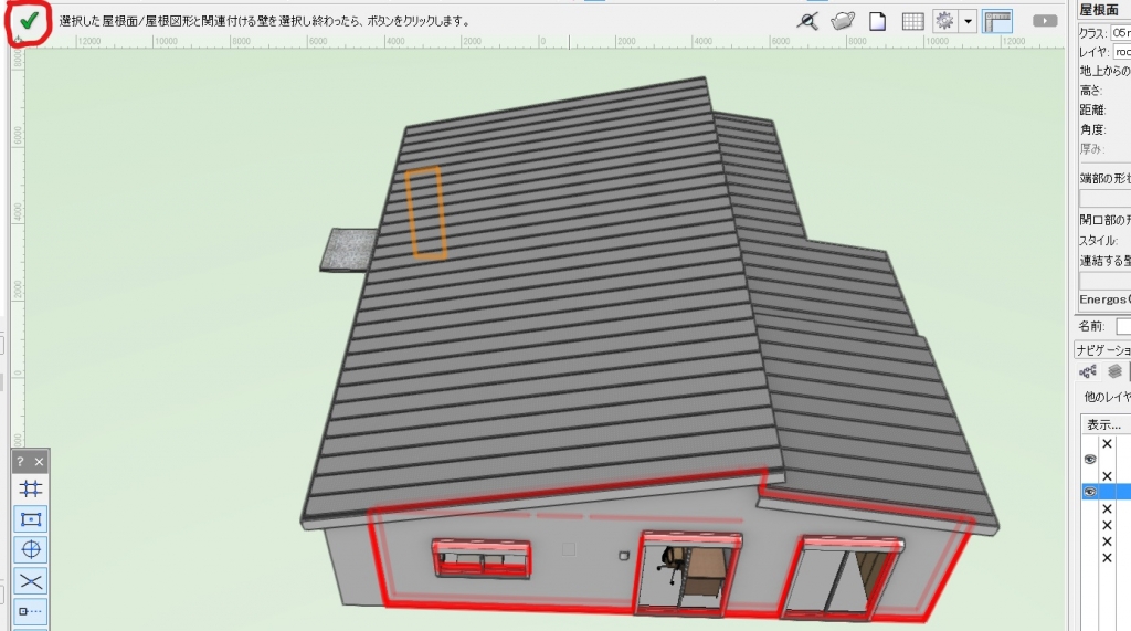もしストーリで区別している場合は(屋根は屋根ストーリで壁は1階ストーリ等)レイヤを移動しないといけませんが