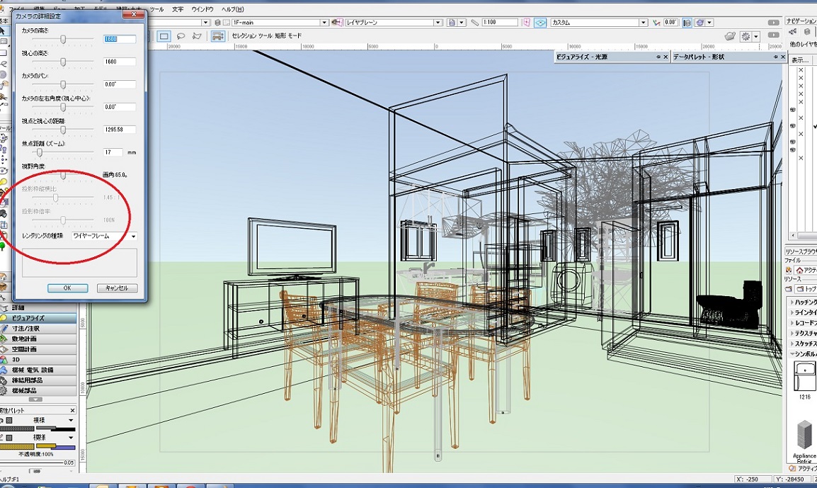 レンダーカメラの詳細で枠の縦横比の調整バーがグレーになっています。