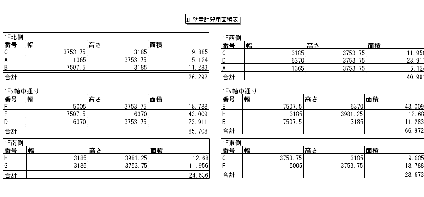 ⑤区分ごとの面積表を作成します。