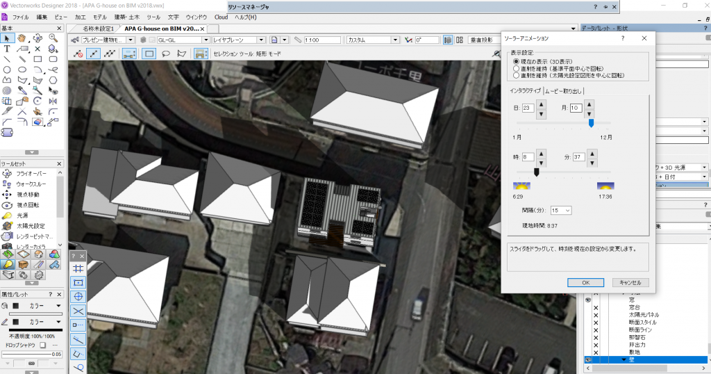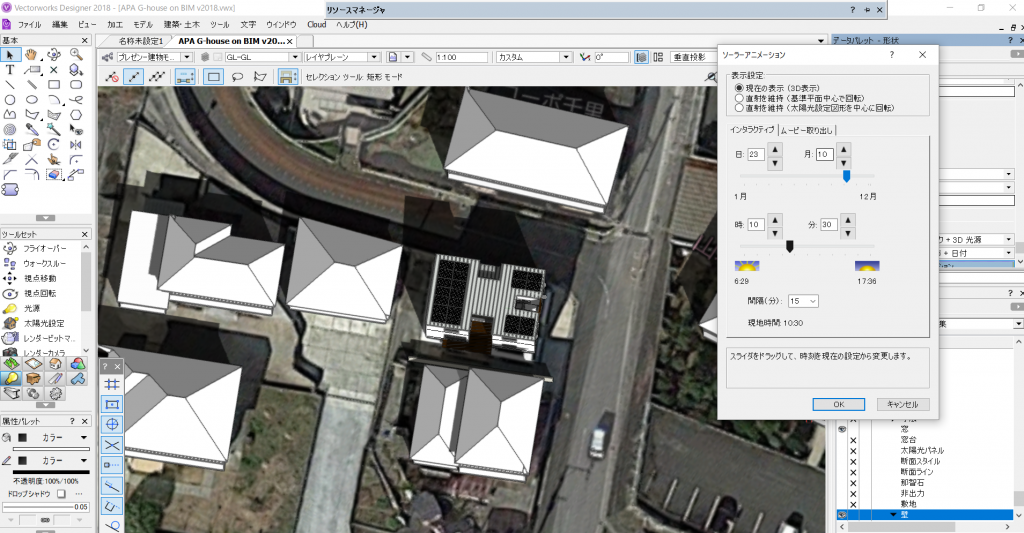 ちなみに、他の建物モデルの影もほぼ実際の陰に重なっているのがわかると思います。