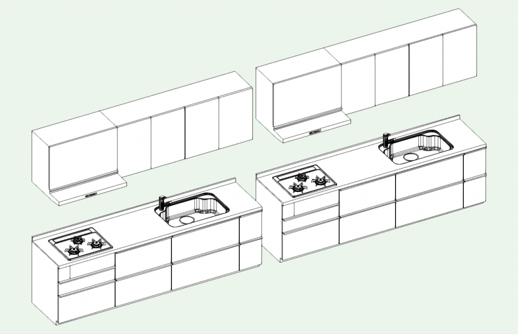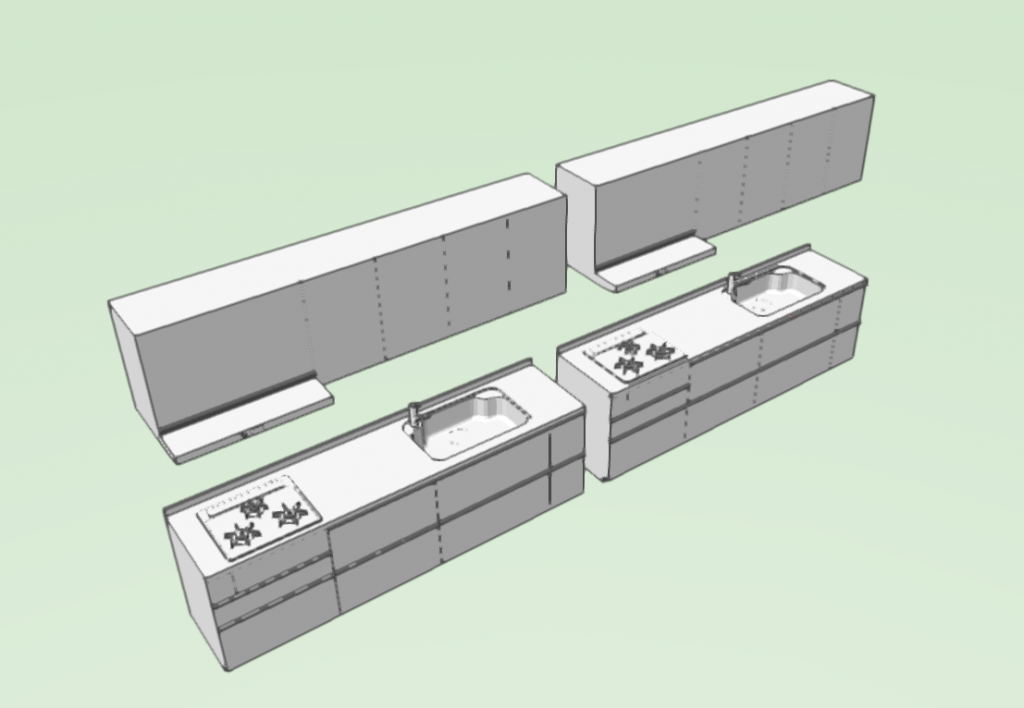 一見ハイブリッドの方が細かくされているように見えますが、メーカー配布の2Dの方がコンロ上の網目やシンク上の小物入れなどの表現が詳細にされています。